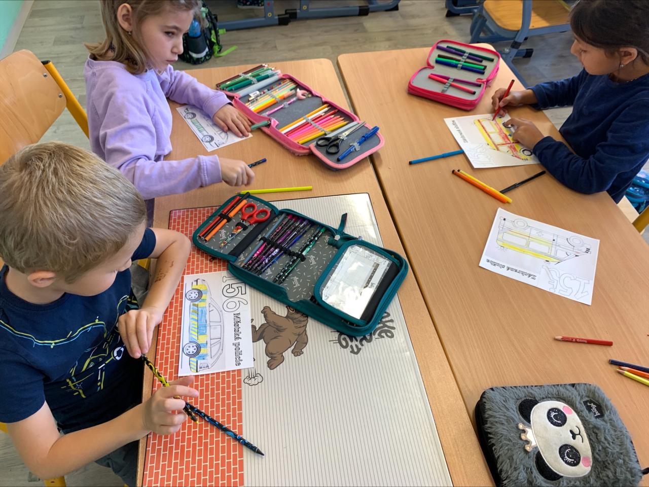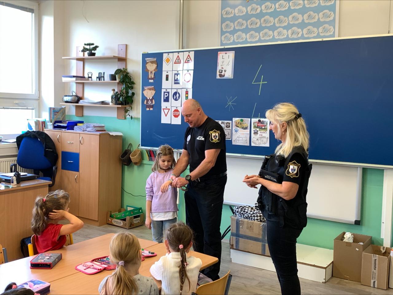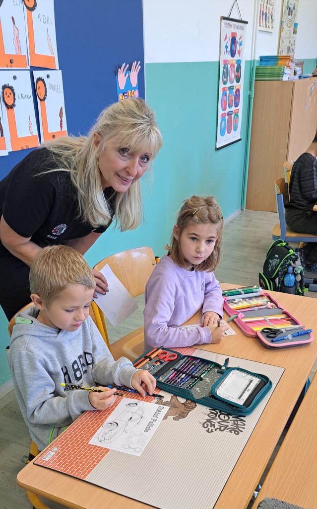Na 1. stupni se v prvních třídách děti seznámily s vybavením strážníka, vybarvovaly omalovánky s tématem vozidel Integrovaného záchranného systému, naučily se i nějaké básničky o bezpečnosti a plynulosti provozu na pozemních komunikacích a zároveň se pokračovalo ve vyplňování rozdaného zápisníku AJAX, určeného pro 2. a 3. třídy.