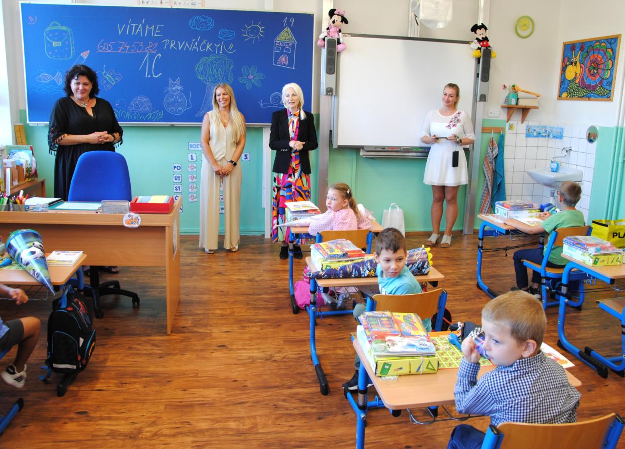 Fotografie jsou ze ZŠ Nerudova, kam 1. září mezi prvňáčky zavítala starostka Dana Havlátková Jurštaková.