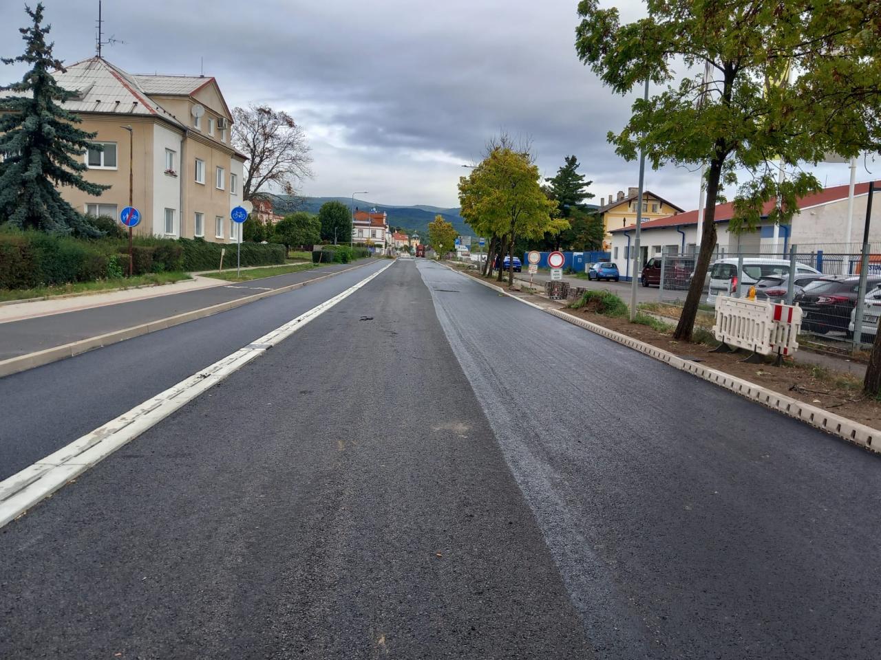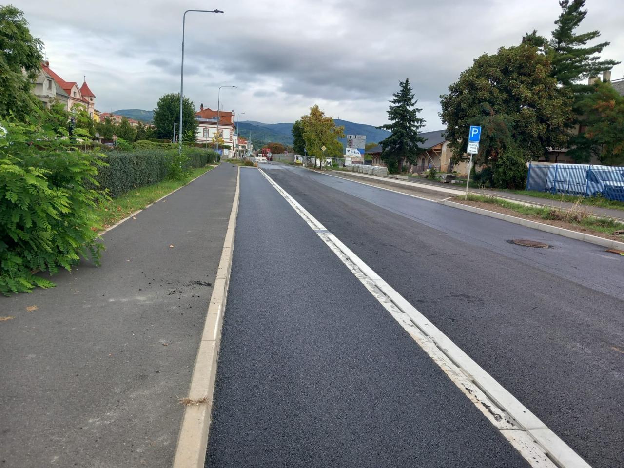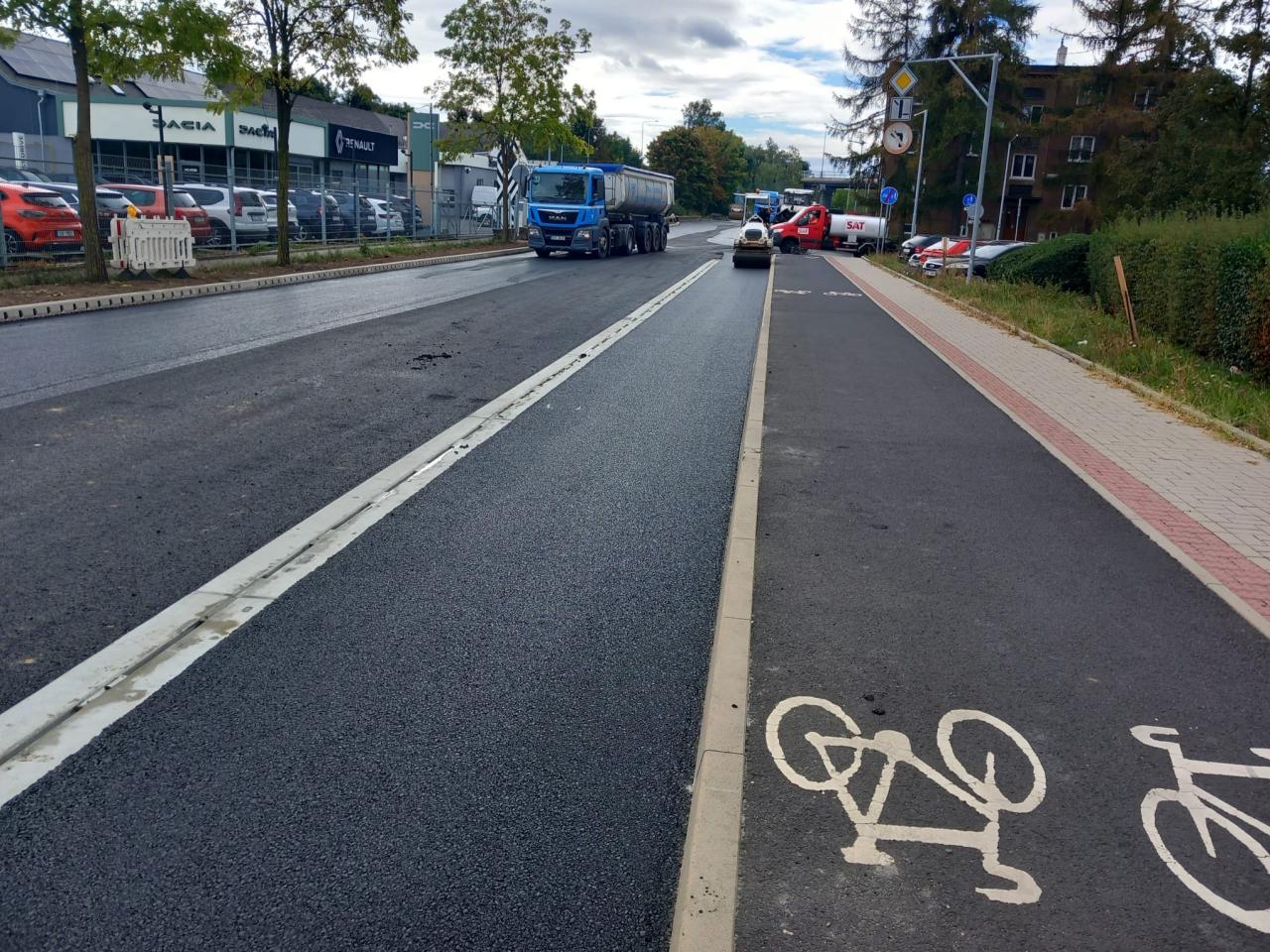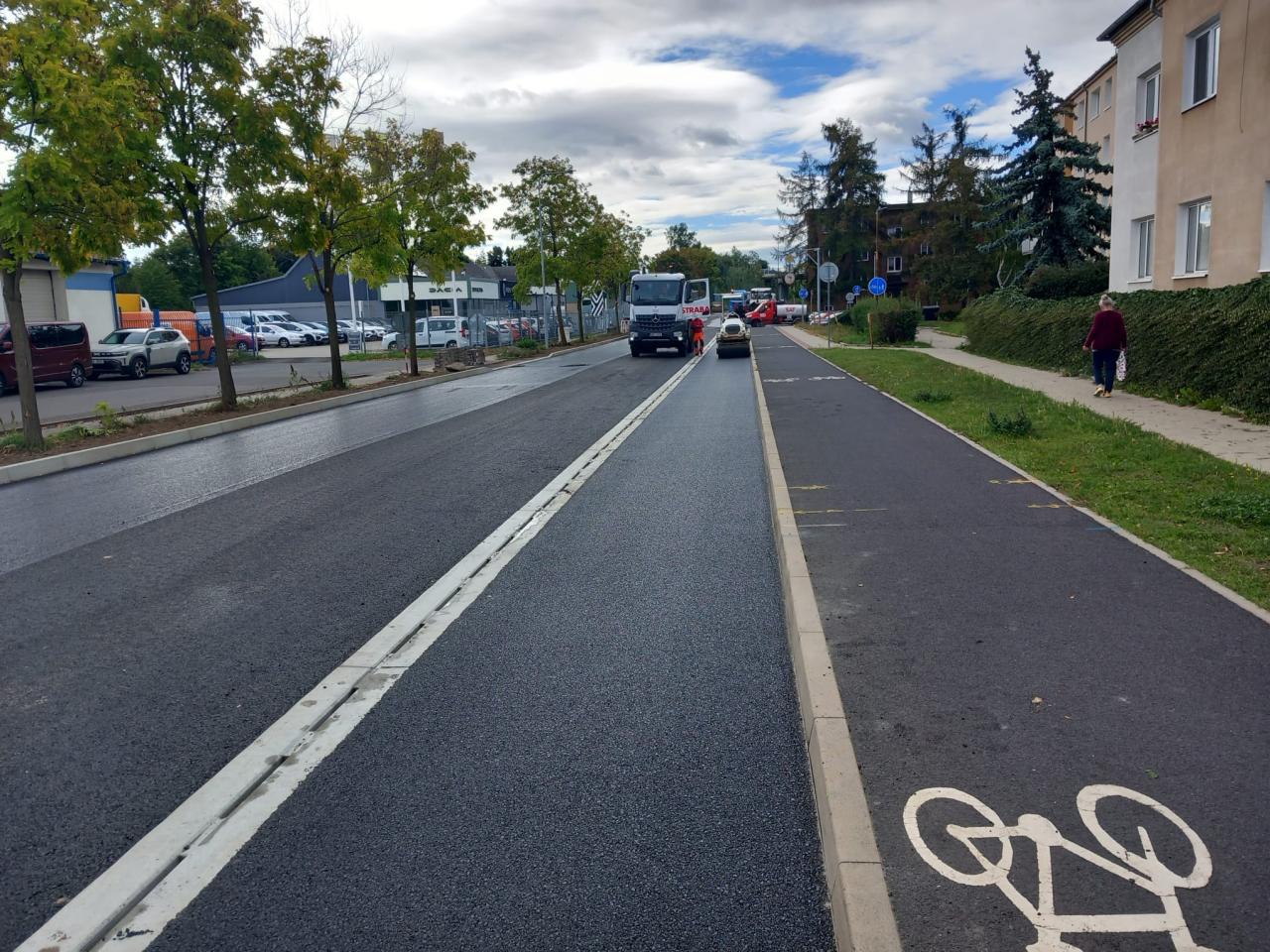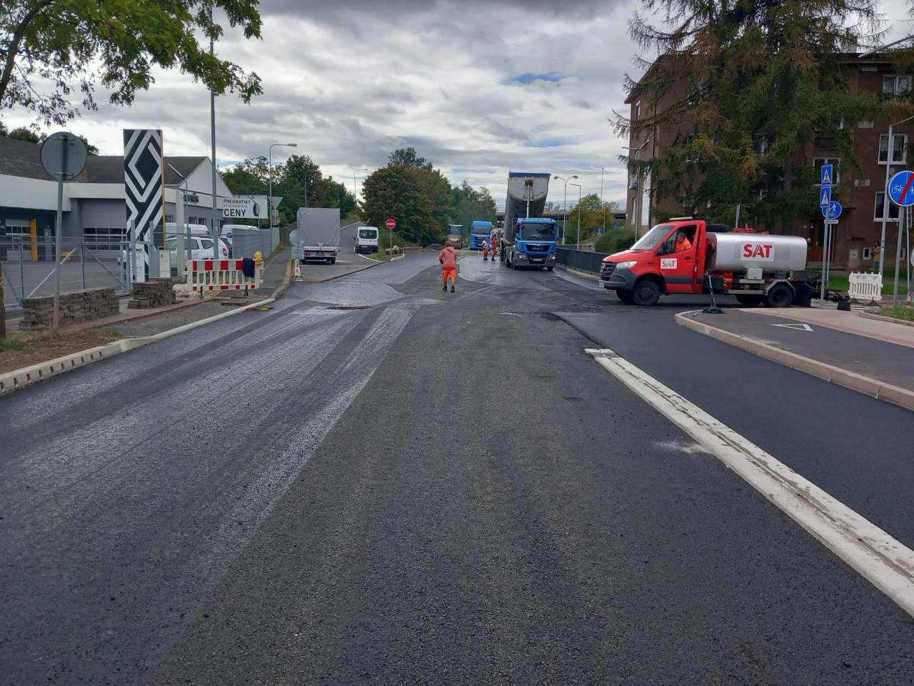Rekonstrukce komunikace v ulici Chomutovská se blíží ke svému závěru. Tento týden probíhá finální pokládka asfaltového krytu, která bude dokončena v následujících dnech. Současně se pracuje na dodláždění ploch se zámkovou dlažbou – konkrétně podélného parkovacího zálivu u nádraží, navazujících vjezdů a terénních úprav v okolí.
