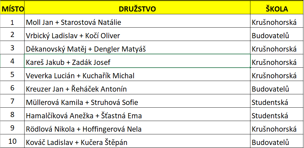 Pořadí v první desítce je v přiložené tabulce.