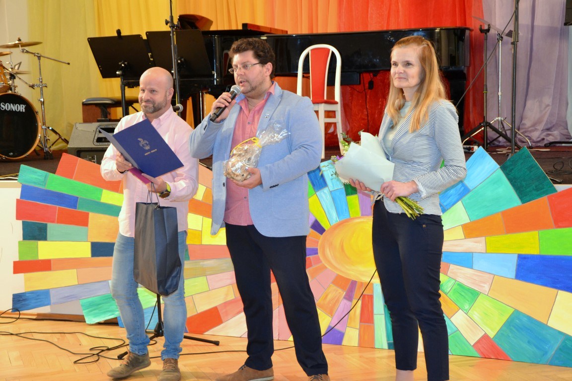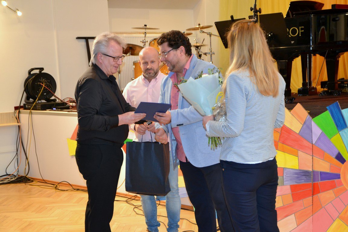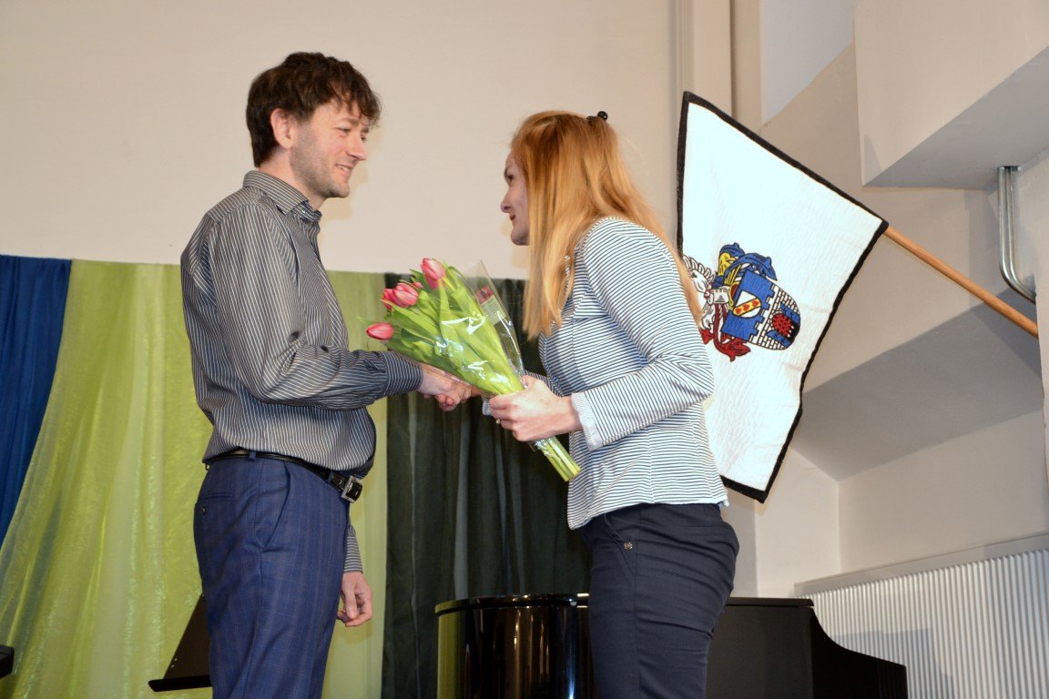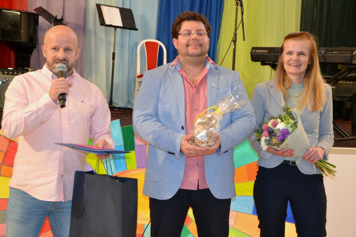 Naši učitelé slaví tento svůj svátek již tradičně prací, a sice pořádají Koncert učitelů. Nejinak tomu bylo i letos. Tentokrát ovšem byl koncert ozvláštněn přáním starosty města nejlepšímu učiteli 2026, panu Karolu Kuboškovi. A tak patřil úvod koncertu představitelům města, panu Jiřímu Šrumovi, Karlu Berntovi a Lence Batrinové, kteří poděkovali panu Kuboškovi za jeho dosavadní práci, předali mu pamětní list, dárky a květiny a teprve poté mohl začít samotný koncert.