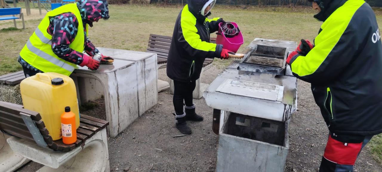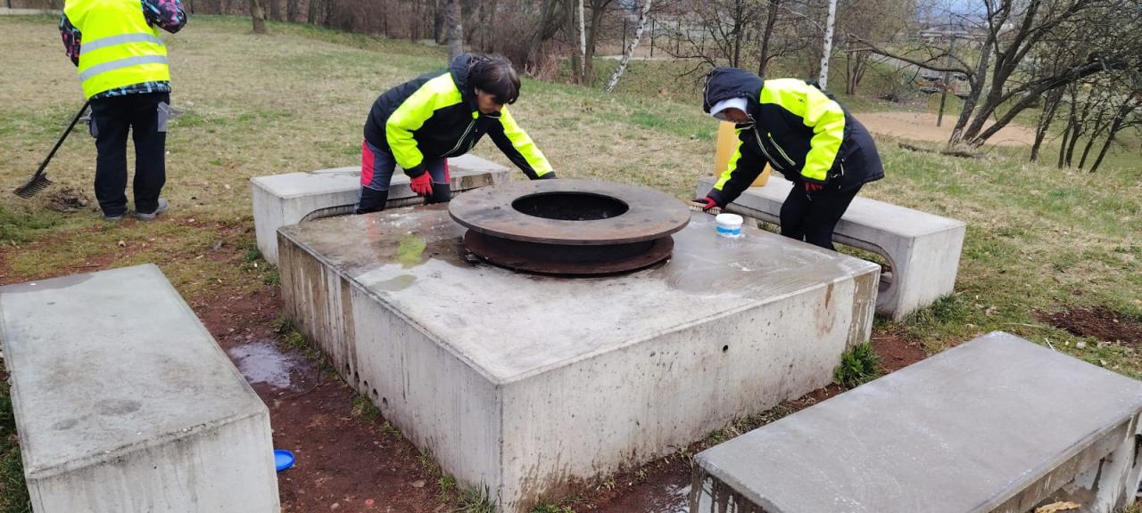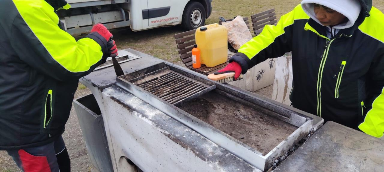 Čištění a údržba se týká také veřejných grilovišť v Olejomlýnském parku. Drobnými opravami prošla i místní pumptracková dráha.