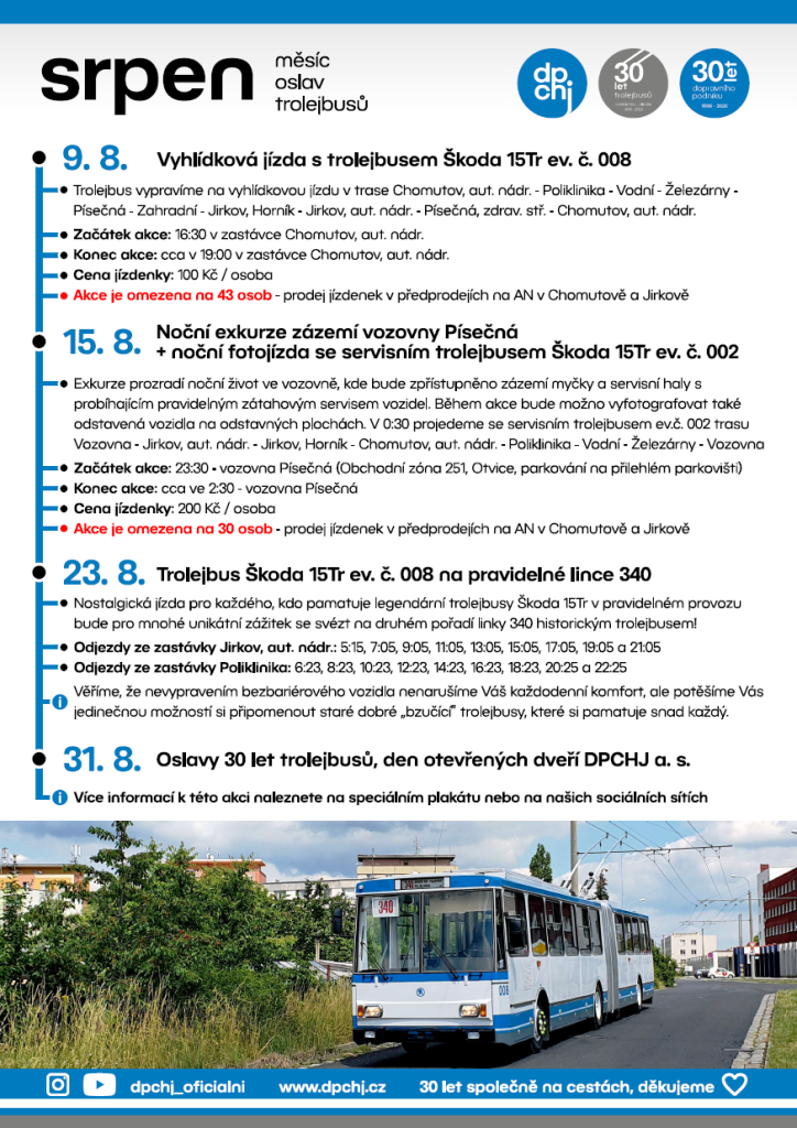 Věříme, že vypravením bezbariérového vozidla nenarušíme Váš každodenní komfort, ale potěšíme Vás jedinečnou možností si připomenout staré „bouchlé“ trolejbusy, které si pamatuje snad každý.